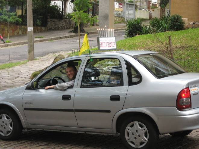 Nossa primeira atividade foi a"Menora-Movel"e a elaboracao de bandeiras de "Feliz Chanukah"que comoveram varios motoristas e passageiros.